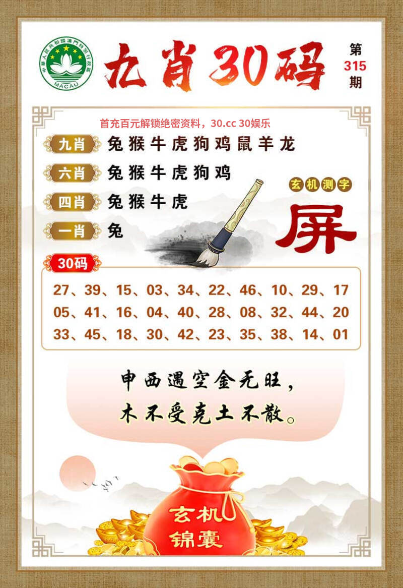| 315期:【绝杀二肖】〖牛兔〗开:虎04准 |